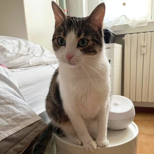 Ibu è un gatto europeo maschio castrato di 4 anni, affetto da asma felina diagnosticata in giovane età. I primi episodi di tosse e difficoltà respiratoria sono comparsi già a 6 mesi, con crisi ricorrenti che compromettevano in modo significativo la sua qualità di vita.